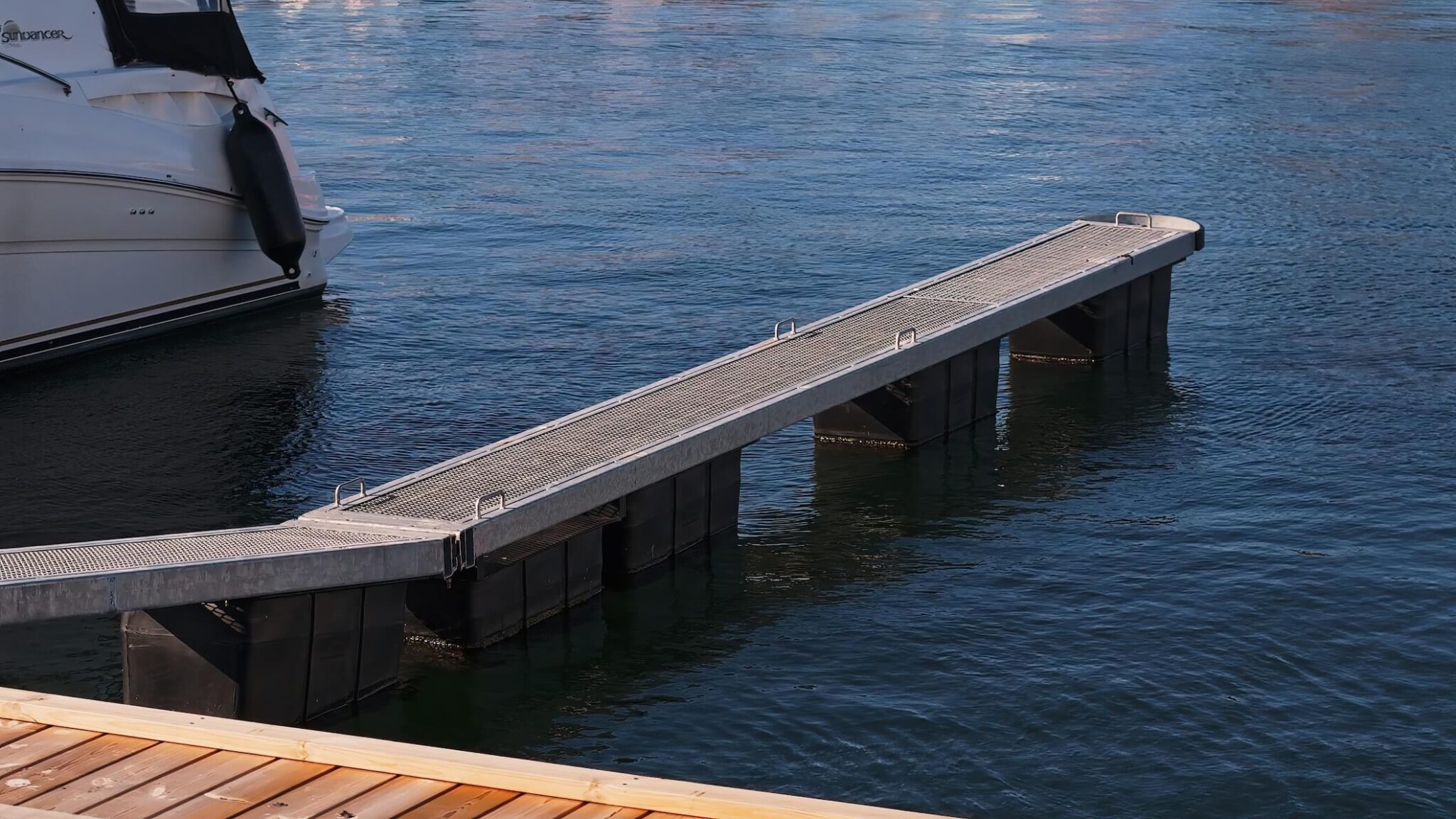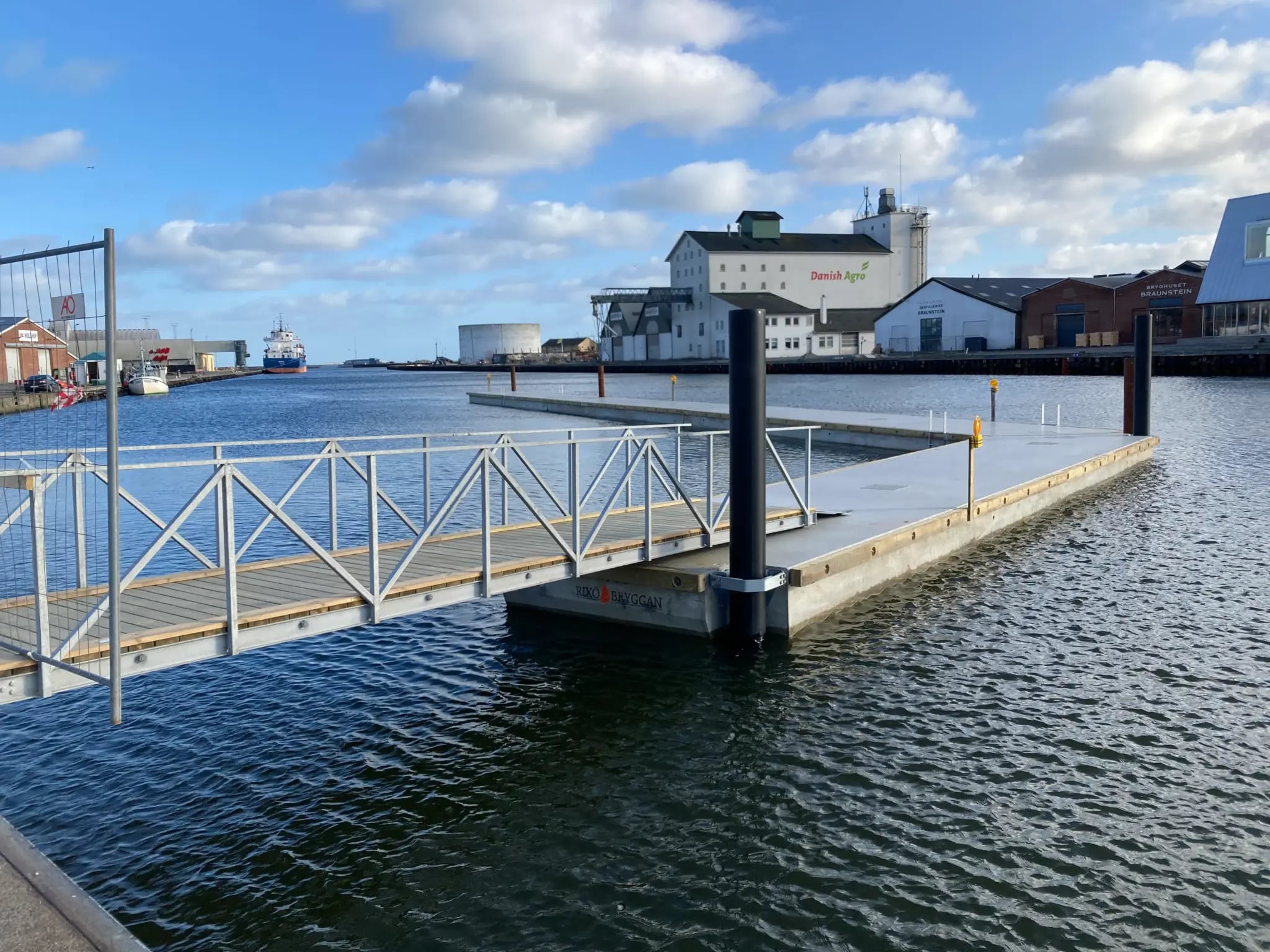 Bruges inde i havne eller på mere beskyttede steder. Betonopdriftsblokke er forbundet med kraftige trævanger og afsluttet med trædæk. Træsort kan leveres efter eget ønske. Opdriftsblokke er fyldt med polyethylen og er synkefri. Alle indstøbninger er udført i syrefast rustfrit stål.
